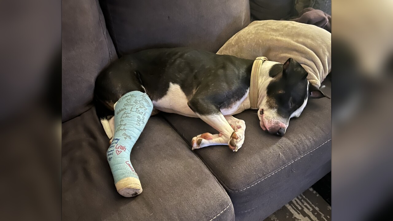 In early November of 2023, Bee and I were taking a walk outside. She saw a squirrel, somehow slipped out of her collar, chased the squirrel into the road and was hit by a car. Immediately we rushed her to our nearest emergency veterinarian. The tibia and fibula of her right hind leg were fractured. Because they were clean breaks, thought of healing without surgery was a strong possibility, but no guarantee. We're just so grateful she was able to walk away from that, to be honest!!
